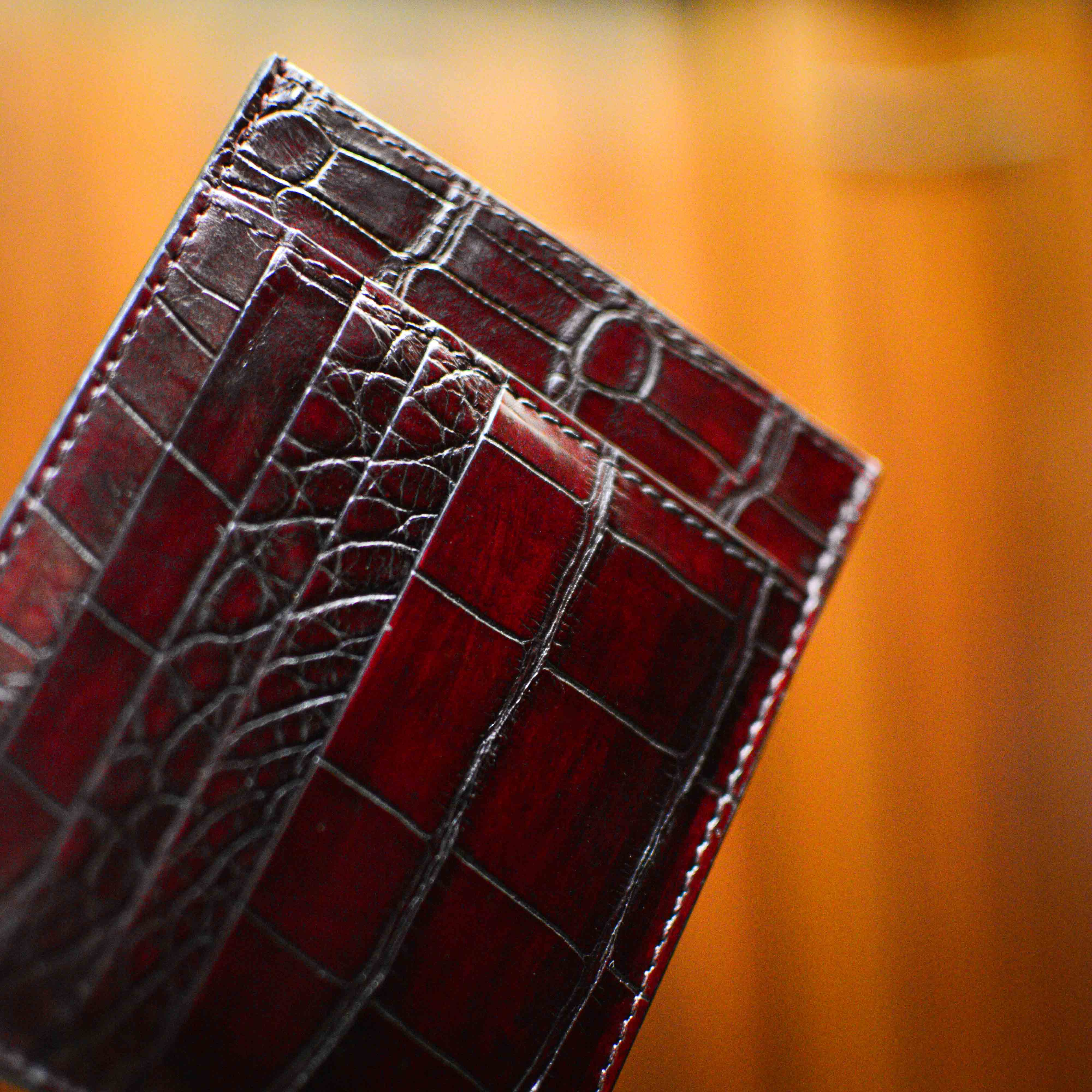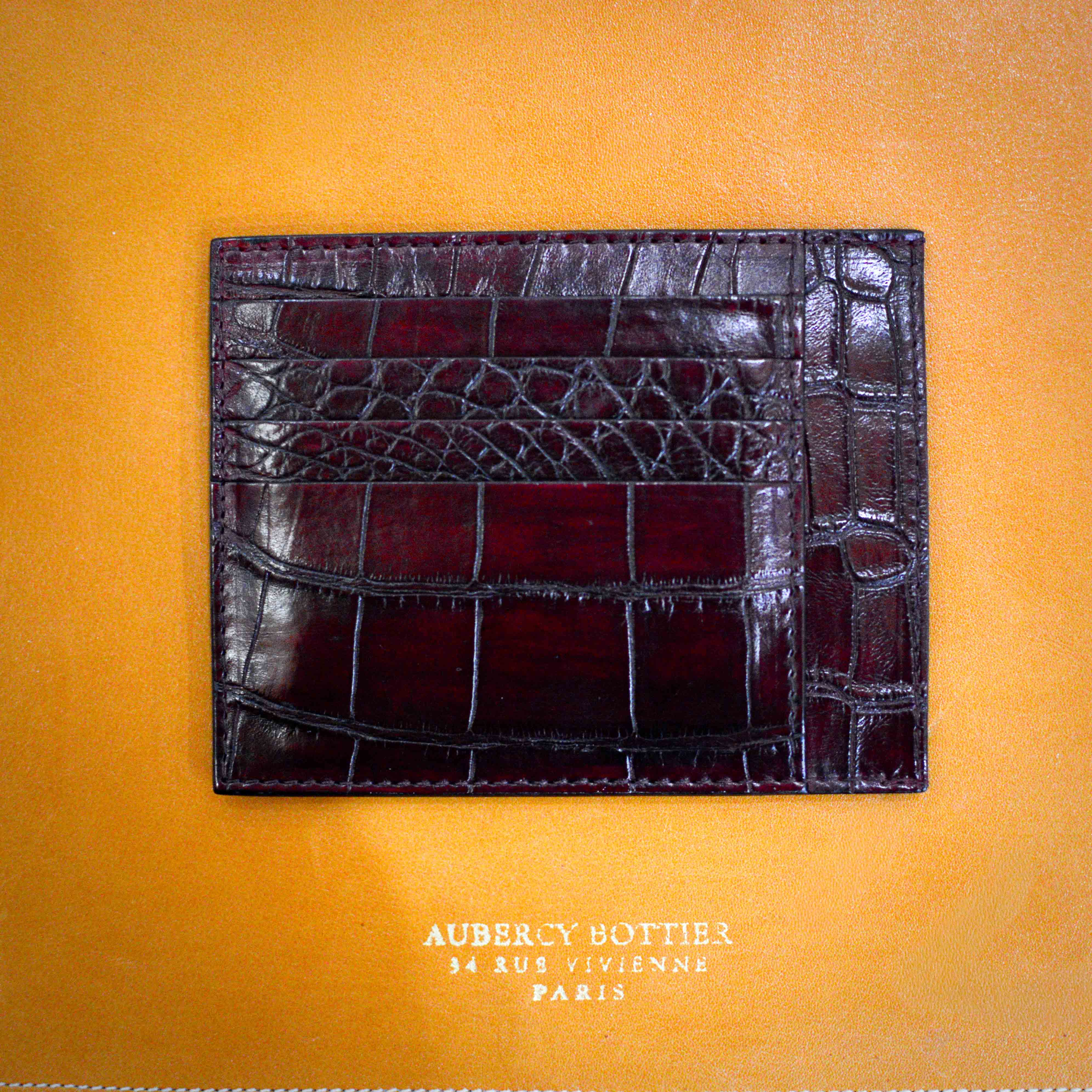 Grand porte-carte en crocodile Bordeaux