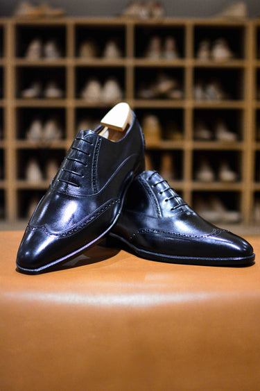 The Gordon revisits the eternal 5-eyelet golf-toe Oxford shoe through a pattern full of lines, curves and perforations distilled where you don't expect them.