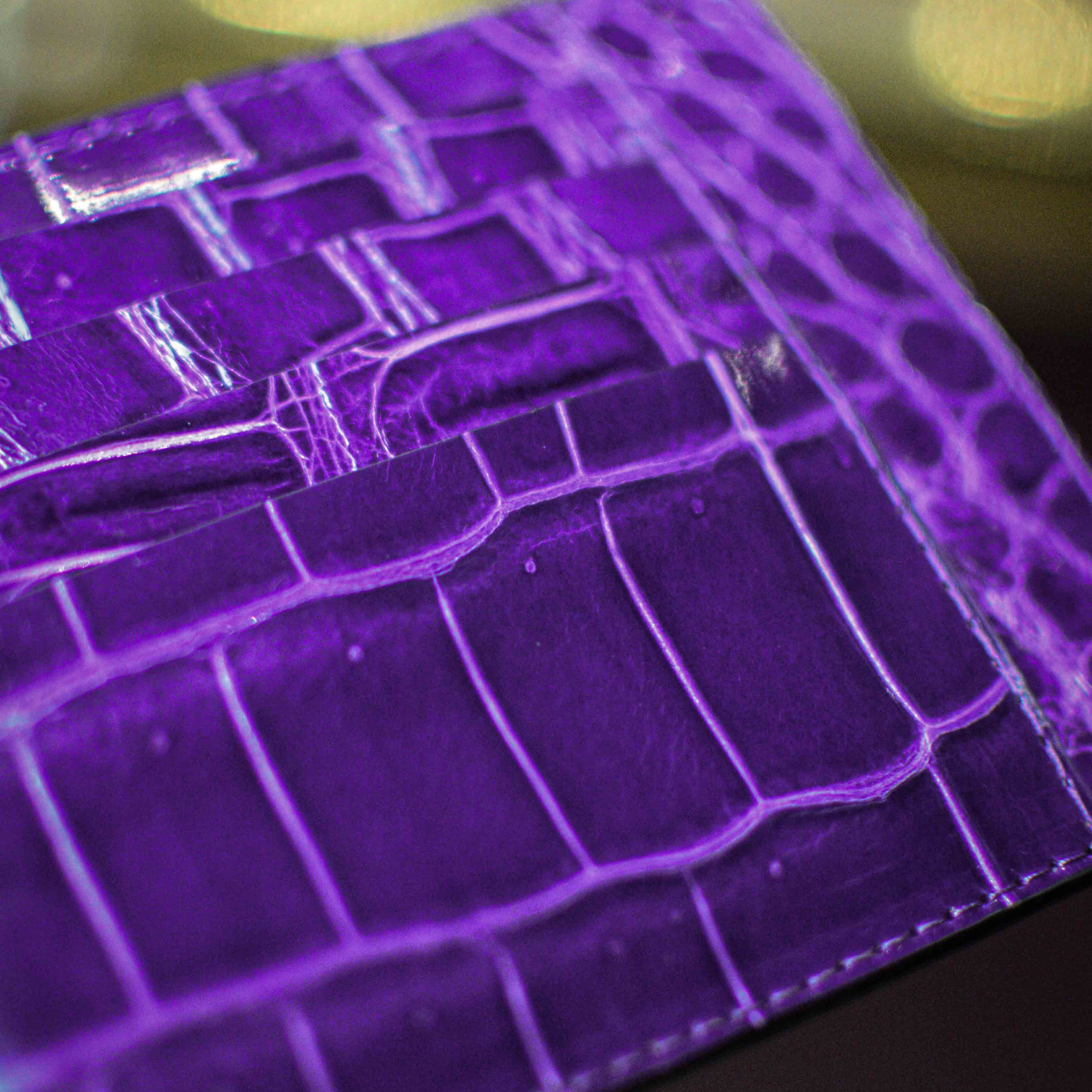 Large raspberry crocodile card holder