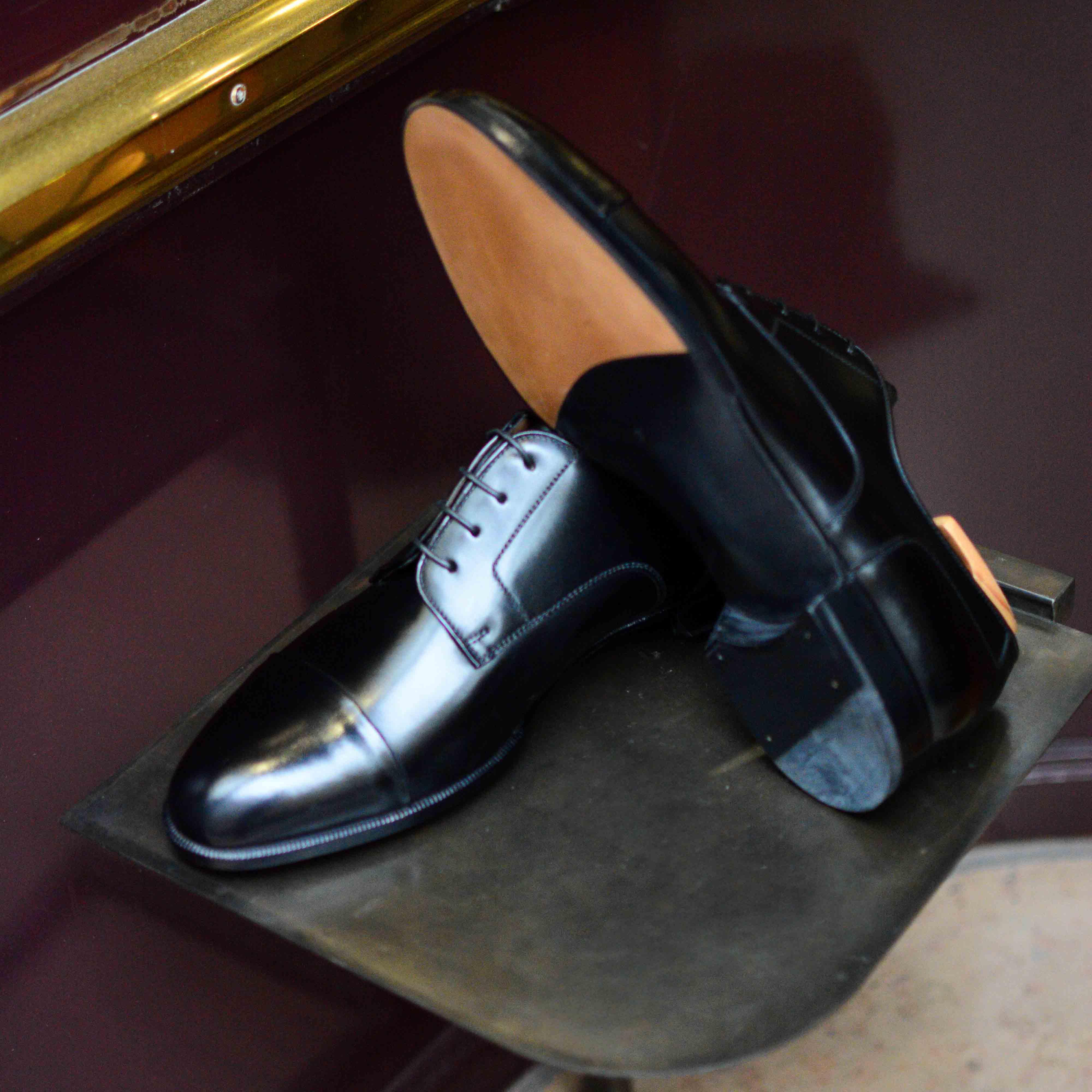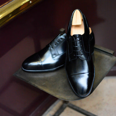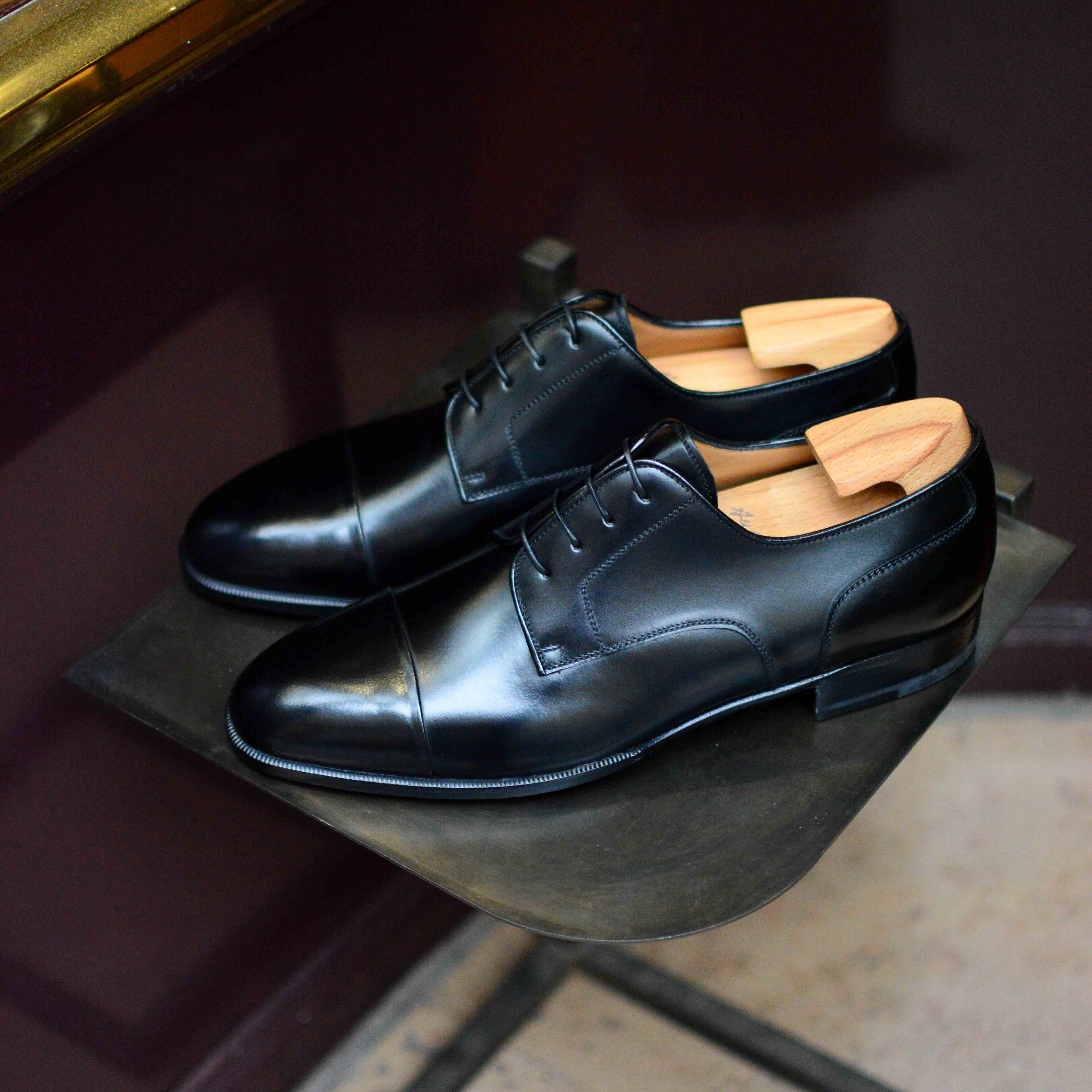 Ce derby à 4 œillets, à bout droit perforé en pécari fait partie des grands classiques pour hommes.